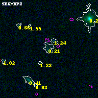 Black segments are analyzed here. Roll mouse over color images to view segments. Best viewed in a wide browser window (1200 pixels or more). Download SED & P(z) plots to view larger versions.