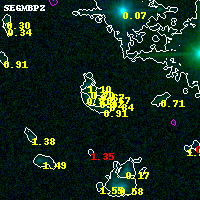 Black segments are analyzed here. Roll mouse over color images to view segments. Best viewed in a wide browser window (1200 pixels or more). Download SED & P(z) plots to view larger versions.