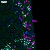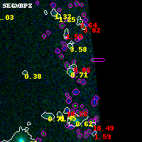 Black segments are analyzed here. Roll mouse over color images to view segments. Best viewed in a wide browser window (1200 pixels or more). Download SED & P(z) plots to view larger versions.