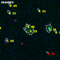Black segments are analyzed here. Roll mouse over color images to view segments. Best viewed in a wide browser window (1200 pixels or more). Download SED & P(z) plots to view larger versions.