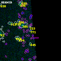 Black segments are analyzed here. Roll mouse over color images to view segments. Best viewed in a wide browser window (1200 pixels or more). Download SED & P(z) plots to view larger versions.