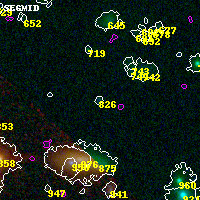 Black segments are analyzed here. Roll mouse over color images to view segments. Best viewed in a wide browser window (1200 pixels or more). Download SED & P(z) plots to view larger versions.