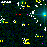 Black segments are analyzed here. Roll mouse over color images to view segments. Best viewed in a wide browser window (1200 pixels or more). Download SED & P(z) plots to view larger versions.