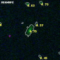 Black segments are analyzed here. Roll mouse over color images to view segments. Best viewed in a wide browser window (1200 pixels or more). Download SED & P(z) plots to view larger versions.