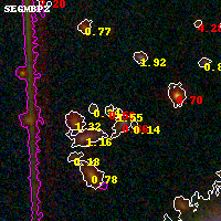 Black segments are analyzed here. Roll mouse over color images to view segments. Best viewed in a wide browser window (1200 pixels or more). Download SED & P(z) plots to view larger versions.