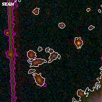 Black segments are analyzed here. Roll mouse over color images to view segments. Best viewed in a wide browser window (1200 pixels or more). Download SED & P(z) plots to view larger versions.