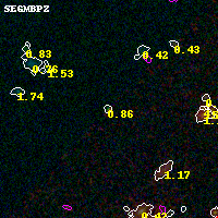 Black segments are analyzed here. Roll mouse over color images to view segments. Best viewed in a wide browser window (1200 pixels or more). Download SED & P(z) plots to view larger versions.