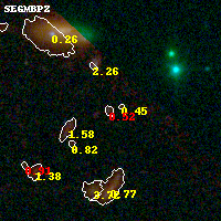 Black segments are analyzed here. Roll mouse over color images to view segments. Best viewed in a wide browser window (1200 pixels or more). Download SED & P(z) plots to view larger versions.
