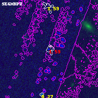 Object #13635 x,y = (6197, 4141) RA, Dec = (11:57:53.376, -10:46:46.92) = (179.47240, -10.77970) BPZ = 1.593 [1.486--2.004] type = 11.00 (SB11_A_0_l) chisq2 = 564.10 ODDS = 0.76 z_cluster = 0.570