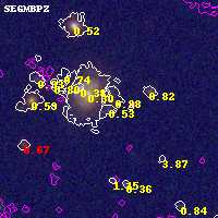 Object #14913 x,y = (3824, 4306) RA, Dec = (11:58:03.048, -10:46:36.84) = (179.51270, -10.77690) BPZ = 0.527 [0.133--0.882] type = 9.10 (SB2_B10 - SB3_B10) chisq2 = 0.31 ODDS = 0.21 z_cluster = 0.570