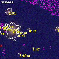 Object #15038 x,y = (3861, 4322) RA, Dec = (11:58:02.880, -10:46:36.12) = (179.51200, -10.77670) BPZ = 0.818 [0.178--1.019] type = 7.90 (SB1_B10 - Scd_B10) chisq2 = 0.34 ODDS = 0.27 z_cluster = 0.570