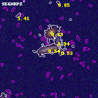 Object #15800 x,y = (5434, 4443) RA, Dec = (11:57:56.472, -10:46:28.92) = (179.48530, -10.77470) BPZ = 0.536 [0.157--1.133] type = 7.00 (Scd_B10) chisq2 = 0.00 ODDS = 0.20 z_cluster = 0.570