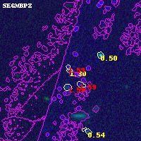 Object #17957 x,y = (2740, 4845) RA, Dec = (11:58:07.440, -10:46:04.80) = (179.53100, -10.76800) BPZ = 1.297 [0.135--3.186] type = 8.60 (SB2_B10 - SB1_B10) chisq2 = 0.00 ODDS = 0.09 z_cluster = 0.570