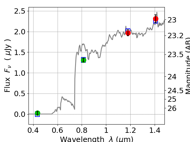 Best viewed in a wide browser window (1200 pixels or more). Download SED & P(z) plots to view larger versions.