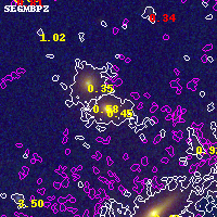 Object #18825 x,y = (5015, 4965) RA, Dec = (11:57:58.176, -10:45:57.60) = (179.49240, -10.76600) BPZ = 0.451 [0.326--0.525] type = 3.60 (Ell4_A_0 - Ell5_A_0) chisq2 = 0.02 ODDS = 0.72 z_cluster = 0.570