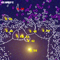 Object #19137 x,y = (5223, 4971) RA, Dec = (11:57:57.336, -10:45:57.24) = (179.48890, -10.76590) BPZ = 0.480 [0.331--0.585] type = 4.00 (Ell4_A_0) chisq2 = 0.07 ODDS = 0.62 z_cluster = 0.570