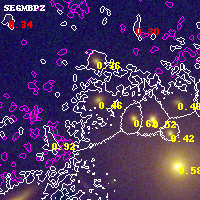 Object #20183 x,y = (5144, 4972) RA, Dec = (11:57:57.672, -10:45:56.88) = (179.49030, -10.76580) BPZ = 0.455 [0.215--1.057] type = 5.80 (Sbc_B10 - ES0_B10) chisq2 = 0.00 ODDS = 0.18 z_cluster = 0.570