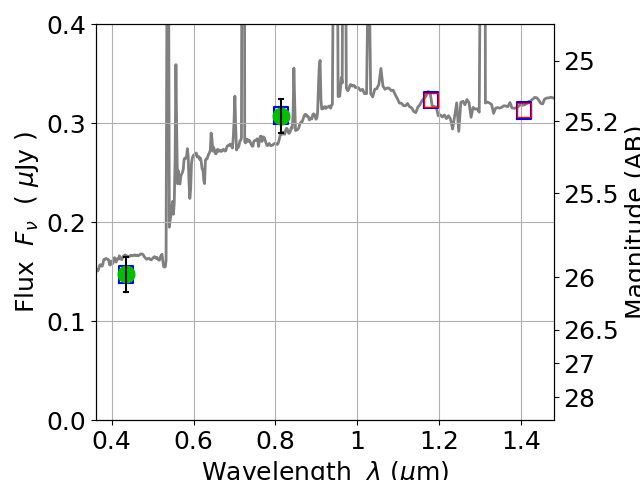 Best viewed in a wide browser window (1200 pixels or more). Download SED & P(z) plots to view larger versions.