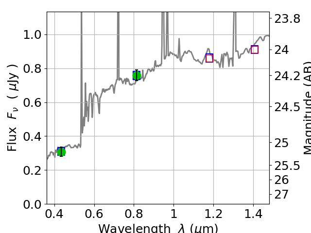 Best viewed in a wide browser window (1200 pixels or more). Download SED & P(z) plots to view larger versions.