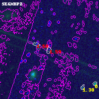 Object #24376 x,y = (3040, 5643) RA, Dec = (11:58:06.240, -10:45:16.92) = (179.52600, -10.75470) BPZ = 1.593 [1.459--2.061] type = 11.00 (SB11_A_0_l) chisq2 = 68.89 ODDS = 0.65 z_cluster = 0.570