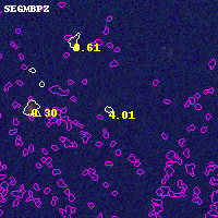 Object #24425 x,y = (4657, 5825) RA, Dec = (11:57:59.640, -10:45:05.76) = (179.49850, -10.75160) BPZ = 4.011 [3.612--4.996] type = 11.00 (SB11_A_0_l) chisq2 = 0.15 ODDS = 0.35 z_cluster = 0.570