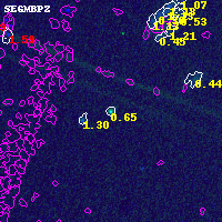 Object #24706 x,y = (3132, 5573) RA, Dec = (11:58:05.856, -10:45:20.88) = (179.52440, -10.75580) BPZ = 0.645 [0.263--1.735] type = 5.90 (Sbc_B10 - ES0_B10) chisq2 = 0.00 ODDS = 0.19 z_cluster = 0.570