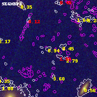 Object #25052 x,y = (5247, 5533) RA, Dec = (11:57:57.240, -10:45:23.40) = (179.48850, -10.75650) BPZ = 0.939 [0.114--3.059] type = 9.50 (SB3_B10 - SB2_B10) chisq2 = 0.04 ODDS = 0.19 z_cluster = 0.570