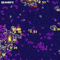 Object #26709 x,y = (5470, 5342) RA, Dec = (11:57:56.328, -10:45:34.92) = (179.48470, -10.75970) BPZ = 3.624 [0.301--4.762] type = 11.00 (SB11_A_0_l) chisq2 = 0.18 ODDS = 0.54 z_cluster = 0.570