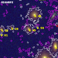 Object #27210 x,y = (5846, 5273) RA, Dec = (11:57:54.816, -10:45:38.88) = (179.47840, -10.76080) BPZ = 0.447 [0.322--0.544] type = 3.20 (Ell5_A_0 - Ell4_A_0) chisq2 = 0.03 ODDS = 0.66 z_cluster = 0.570