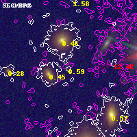 Object #27274 x,y = (5874, 5281) RA, Dec = (11:57:54.696, -10:45:38.52) = (179.47790, -10.76070) BPZ = 0.595 [0.164--4.364] type = 8.70 (SB2_B10 - SB1_B10) chisq2 = 0.10 ODDS = 0.11 z_cluster = 0.570