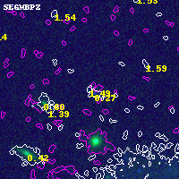 Object #4493 x,y = (5201, 2951) RA, Dec = (11:57:57.432, -10:47:58.20) = (179.48930, -10.79950) BPZ = 1.492 [0.170--3.094] type = 9.20 (SB2_B10 - SB3_B10) chisq2 = 0.00 ODDS = 0.10 z_cluster = 0.570
