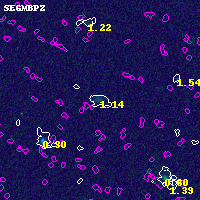 Object #4843 x,y = (5085, 3014) RA, Dec = (11:57:57.912, -10:47:54.60) = (179.49130, -10.79850) BPZ = 1.137 [0.111--3.053] type = 8.90 (SB2_B10 - SB1_B10) chisq2 = 0.00 ODDS = 0.09 z_cluster = 0.570