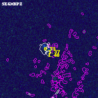 Object #7009 x,y = (5759, 3308) RA, Dec = (11:57:55.152, -10:47:36.96) = (179.47980, -10.79360) BPZ = 1.371 [0.124--3.101] type = 8.70 (SB2_B10 - SB1_B10) chisq2 = 0.00 ODDS = 0.09 z_cluster = 0.570
