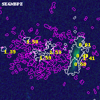 Object #8403 x,y = (2711, 3459) RA, Dec = (11:58:07.560, -10:47:27.96) = (179.53150, -10.79110) BPZ = 1.533 [0.201--2.956] type = 9.80 (SB3_B10 - SB2_B10) chisq2 = 0.00 ODDS = 0.10 z_cluster = 0.570