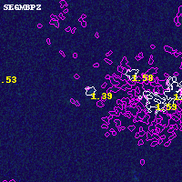 Object #8413 x,y = (2620, 3460) RA, Dec = (11:58:07.944, -10:47:27.60) = (179.53310, -10.79100) BPZ = 1.389 [0.135--3.126] type = 8.80 (SB2_B10 - SB1_B10) chisq2 = 0.00 ODDS = 0.09 z_cluster = 0.570