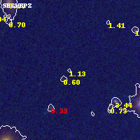 Object #116 x,y = (4605, 5520) RA, Dec = (11:57:59.856, -10:45:24.12) = (179.49940, -10.75670) BPZ = 1.127 [0.285--4.847] type = 10.40 (SB3_B10 - SB11_A_0_l) chisq2 = 0.01 ODDS = 0.07 z_cluster = 0.570