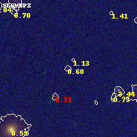 Object #118 x,y = (4597, 5508) RA, Dec = (11:57:59.880, -10:45:24.84) = (179.49950, -10.75690) BPZ = 0.599 [0.216--5.052] type = 7.70 (SB1_B10 - Scd_B10) chisq2 = 0.95 ODDS = 0.09 z_cluster = 0.570