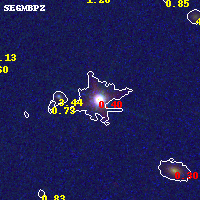 Object #121 x,y = (4711, 5473) RA, Dec = (11:57:59.424, -10:45:27.00) = (179.49760, -10.75750) BPZ = 0.403 [0.051--0.865] type = 6.70 (Scd_B10 - Sbc_B10) chisq2 = 990.00 ODDS = 0.21 z_cluster = 0.570