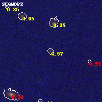 Object #124 x,y = (4864, 5487) RA, Dec = (11:57:58.800, -10:45:25.92) = (179.49500, -10.75720) BPZ = 4.975 [0.279--5.447] type = 8.60 (SB2_B10 - SB1_B10) chisq2 = 0.02 ODDS = 0.19 z_cluster = 0.570