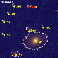 Object #131 x,y = (5146, 5470) RA, Dec = (11:57:57.648, -10:45:27.00) = (179.49020, -10.75750) BPZ = 0.694 [0.303--1.029] type = 6.40 (Sbc_B10 - Scd_B10) chisq2 = 0.44 ODDS = 0.24 z_cluster = 0.570