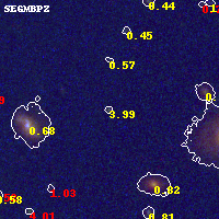 Object #139 x,y = (5058, 5454) RA, Dec = (11:57:58.008, -10:45:28.08) = (179.49170, -10.75780) BPZ = 3.989 [3.477--5.105] type = 10.20 (SB3_B10 - SB11_A_0_l) chisq2 = 0.28 ODDS = 0.32 z_cluster = 0.570