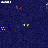Object #150 x,y = (4079, 5436) RA, Dec = (11:58:01.992, -10:45:29.16) = (179.50830, -10.75810) BPZ = 1.588 [1.021--2.608] type = 8.50 (SB2_B10 - SB1_B10) chisq2 = 0.34 ODDS = 0.20 z_cluster = 0.570
