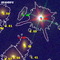 Object #217 x,y = (5955, 5263) RA, Dec = (11:57:54.360, -10:45:39.60) = (179.47650, -10.76100) BPZ = 3.886 [0.318--5.309] type = 8.10 (SB1_B10 - SB2_B10) chisq2 = 0.10 ODDS = 0.24 z_cluster = 0.570
