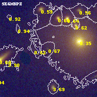 Object #385 x,y = (5159, 4891) RA, Dec = (11:57:57.600, -10:46:01.92) = (179.49000, -10.76720) BPZ = 0.672 [0.483--0.946] type = 5.70 (Sbc_B10 - ES0_B10) chisq2 = 0.36 ODDS = 0.44 z_cluster = 0.570