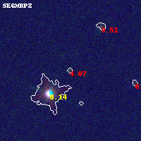 Object #42 x,y = (4260, 5770) RA, Dec = (11:58:01.272, -10:45:09.00) = (179.50530, -10.75250) BPZ = 4.069 [3.803--4.852] type = 11.00 (SB11_A_0_l) chisq2 = 2.13 ODDS = 0.42 z_cluster = 0.570