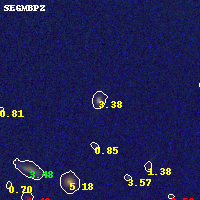 Object #43 x,y = (4822, 5764) RA, Dec = (11:57:58.968, -10:45:09.36) = (179.49570, -10.75260) BPZ = 3.379 [0.299--3.586] type = 9.20 (SB2_B10 - SB3_B10) chisq2 = 0.48 ODDS = 0.82 z_cluster = 0.570