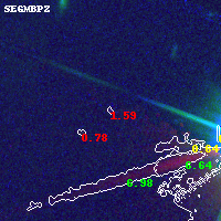 Object #44 x,y = (5135, 5762) RA, Dec = (11:57:57.696, -10:45:09.72) = (179.49040, -10.75270) BPZ = 1.595 [0.838--7.407] type = 8.50 (SB2_B10 - SB1_B10) chisq2 = 10.80 ODDS = 0.19 z_cluster = 0.570