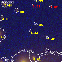 Object #444 x,y = (4677, 4883) RA, Dec = (11:57:59.568, -10:46:02.28) = (179.49820, -10.76730) BPZ = 1.118 [0.363--2.666] type = 8.70 (SB2_B10 - SB1_B10) chisq2 = 0.14 ODDS = 0.22 z_cluster = 0.570