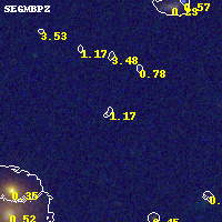 Object #453 x,y = (4242, 4874) RA, Dec = (11:58:01.344, -10:46:03.00) = (179.50560, -10.76750) BPZ = 1.166 [0.508--2.964] type = 10.40 (SB3_B10 - SB11_A_0_l) chisq2 = 0.49 ODDS = 0.09 z_cluster = 0.570
