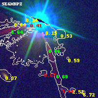 Object #53 x,y = (5279, 5678) RA, Dec = (11:57:57.120, -10:45:14.76) = (179.48800, -10.75410) BPZ = 6.056 [5.810--6.158] type = 9.70 (SB3_B10 - SB2_B10) chisq2 = 0.31 ODDS = 1.00 z_cluster = 0.570